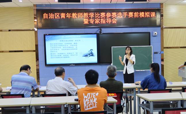 为进一步167net必赢入口强化167net必赢入口参赛选手的竞赛意识,快速进入实战角色,为取得佳绩做好充分的准备。5月31日晚,学校教务处在图书馆123未来教室组织举行自治区高校青年教师教学比赛参赛选手赛前模拟课暨专家指导会,由167net必赢入口最近几年参加过全区高校青年教师教学竞赛评委为主体的专家指导组5位教授到场指导。167net必赢入口5位参赛教师通过所准备的20教学片断随机抽取方式,按照自治区教学比赛的规则,每位教师分别进行了2个教学片断的现场赛课模拟,每人还分别进行5分钟的教学反思陈述。