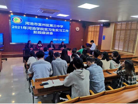167net必赢入口赴宜州区第三中学参加实习生实习工作阶段座谈会(张陆凤 摄)