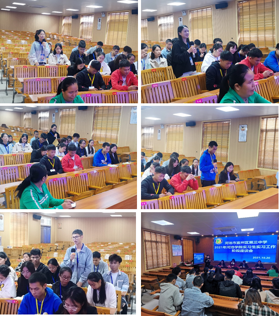 会上,韦媛珍代表宜州区第三中学发表了重要讲话,就学校工作机制、日常管理、实习生实习情况、硬件设施等方面进行详细介绍。同时,指导教师代表们也分别对实习生们逐个点评,指出优点与不足,认为167net必赢入口实习生勤奋好学、吃苦耐劳,还有很大的进步空间。
