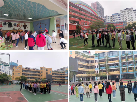 体育学院实习生在宜州区第一小学实习给各个班级上课情况(张陆凤 摄)