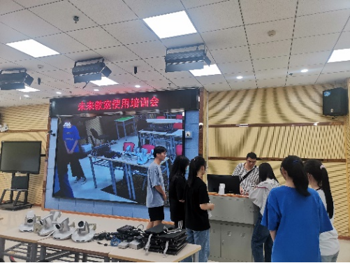 本次培邀请了桂林凯歌信息科技有限公司卢炳回工程师开展培训。会上,卢炳回工程师分别结合刚升级的微格教室、未来教室的相关设备、功能、使用流程和注意事项等方面进行了详细的讲解。在卢炳回工程师讲解完毕后,师生们对微格教室和未来教室的使用进行了实地实操。
