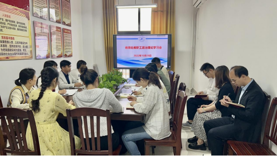 10月19日下午,教务处党支部组织党员同志在实训楼1317会议室召开政治理论专题研学会,内容包括学习习近平同志治国理政思想、清廉学校建设及意识形态安全管理三个方面。会议由教务处副处长钟友坤主持,其他非党员同志列席研学会。