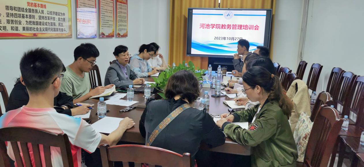 为提升167net必赢入口教务管理人员教学管理水平,10月27日上午,教务处在实训楼1317会议室举办教务管理培训会。教务处副处长王妍妮,教务处相关科室负责人及二级学院教务秘书参加了此次培训会。
